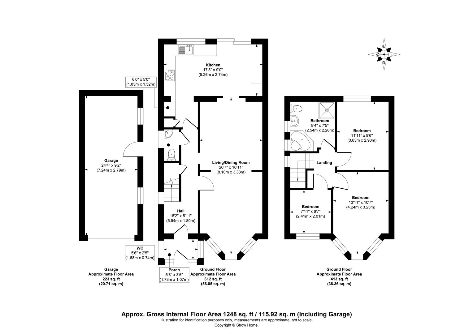 As you step into this beautiful home, you're greeted by a generous open-plan living and dining area, highlighted by a large bay window that floods the room with natural light. An archway leads you into the modern kitchen, featuring fully fitted cabinetry and an abundance of storage space. The kitchen seamlessly connects to the versatile garden room, providing flexible living options to suit a variety of lifestyles.