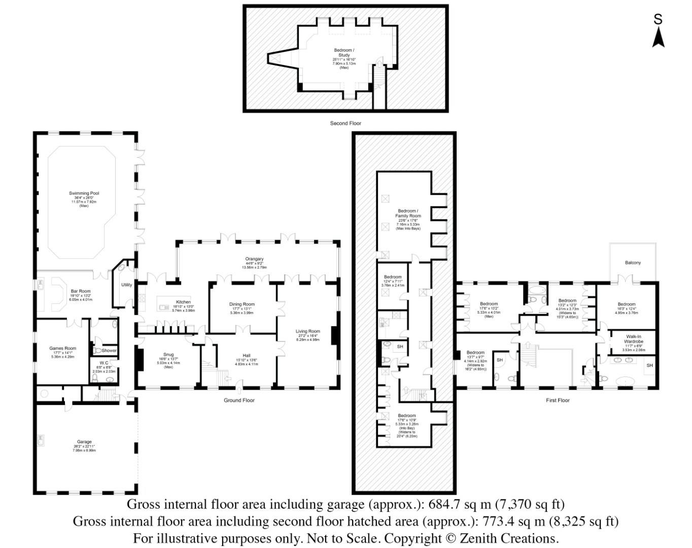 The ground floor has been designed with both daily living and entertaining in mind. Multiple sets of double doors connect the main reception spaces, all of which lead from the impressive entrance hallway. This space is finished with polished limestone flooring, a statement chandelier, and provides access to the formal living room with stone fireplace and log burner, a separate dining room, a snug, and the beautifully crafted Mark Wilkinson kitchen. The kitchen is fully fitted with Miele appliances, a range cooker, and a marble breakfast bar. Each of these light-filled rooms benefits from stunning sash double-glazed windows and has been regularly redecorated by the current owners.
