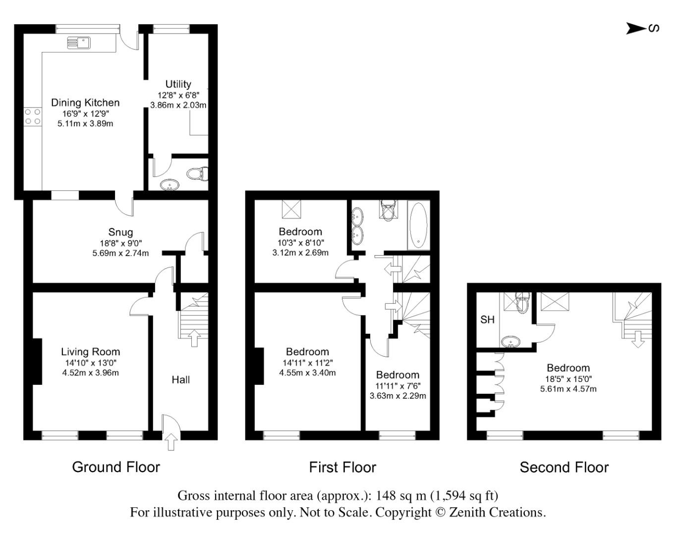 The ground floor is ideal for entertaining offering ample reception space, comprised of an entrance hallway, formal living room which features a fantastic fireplace, a snug which boasts a further fireplace with wood burning stove and an open-plan kitchen diner which grants direct access out onto a South-East facing Terrace.