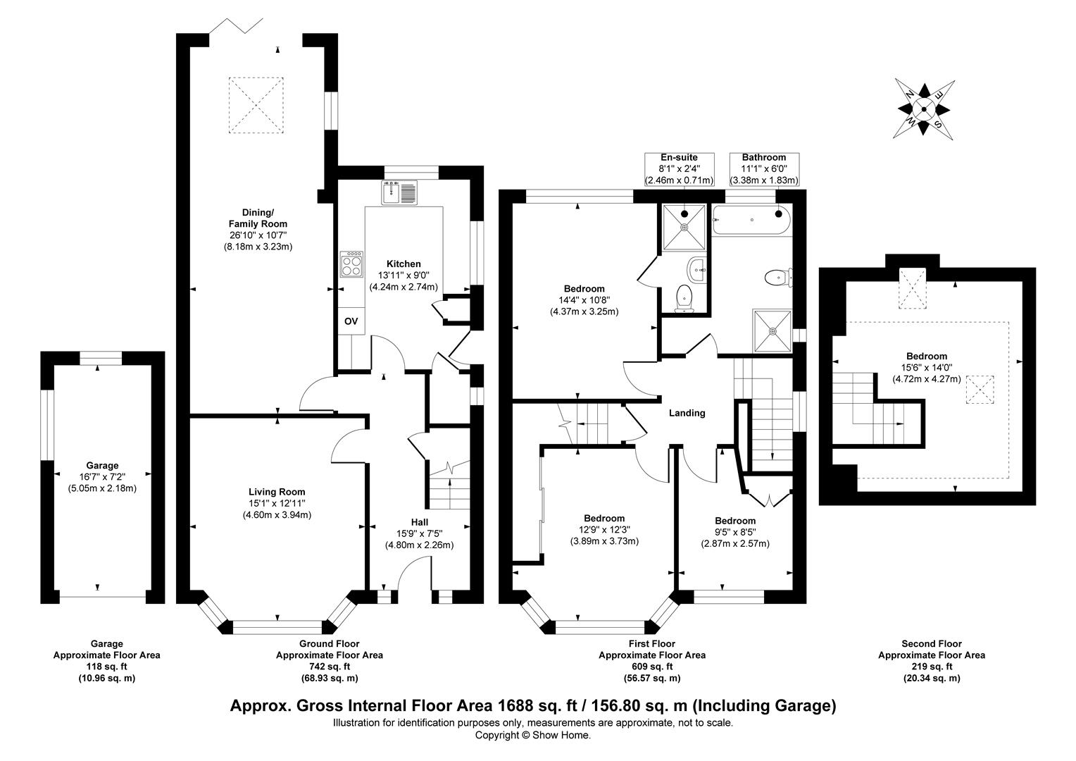 Upstairs, the first floor comprises three spacious double bedrooms, including a stunning principal suite complete with a private en suite shower room. A modern family bathroom serves the remaining bedrooms on this level.