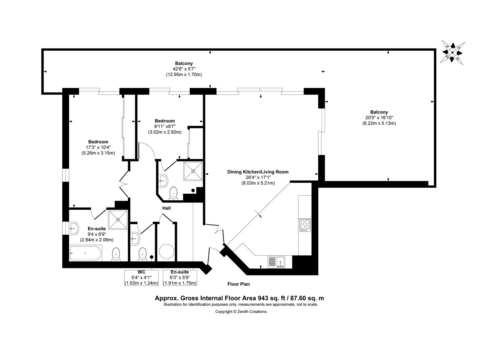 Boasting a spacious open-plan living area, the property features floor-to-ceiling windows leading to a large private terrace, accessible from both bedrooms and the lounge - perfect for outdoor entertaining or relaxation. The modern kitchen is fully equipped with integral appliances and sleek cabinetry, and both bedrooms are well-proportioned each with their own ensuite.