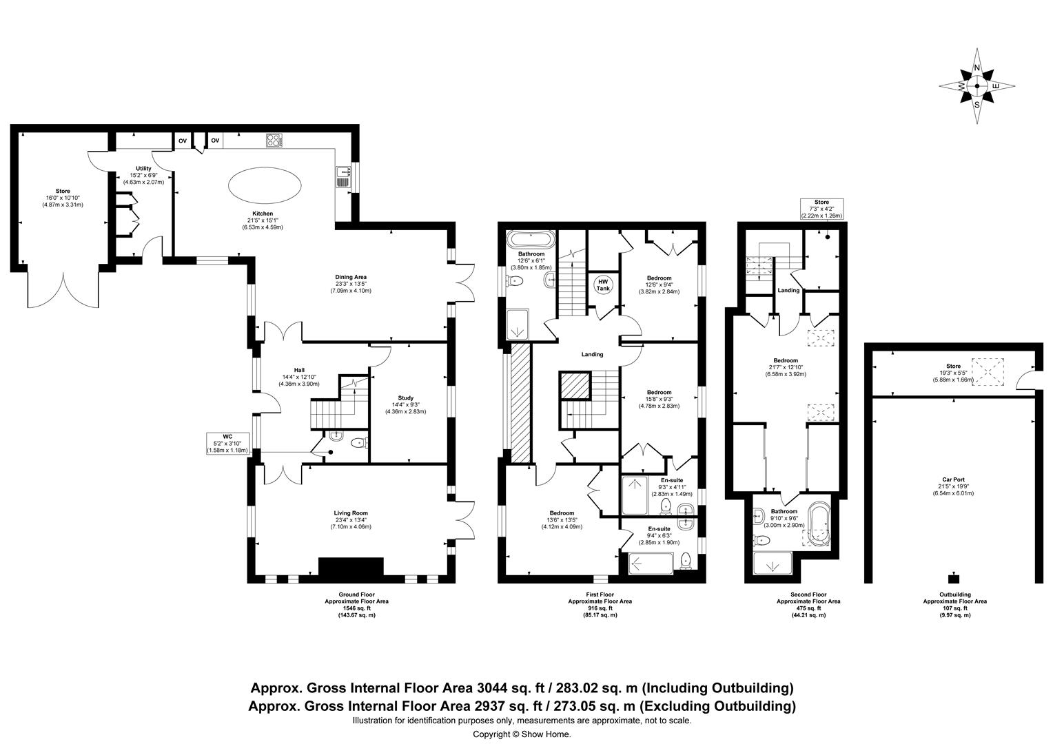 The bespoke oak staircase makes a striking statement as you ascend, with glazed oak and doors that introduce light and a sense of grandeur. A statement chandelier beautifully illuminates the space. Additionally, there is a spacious office/study and beautifully designed guest WC.